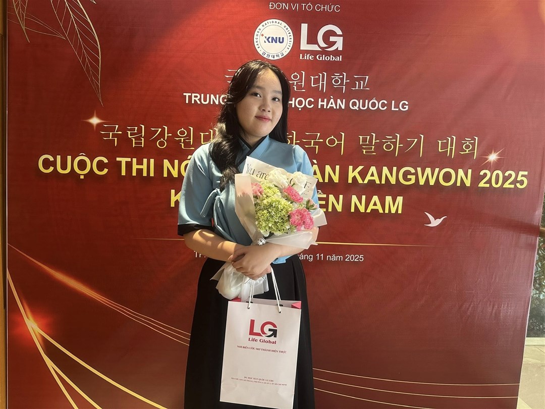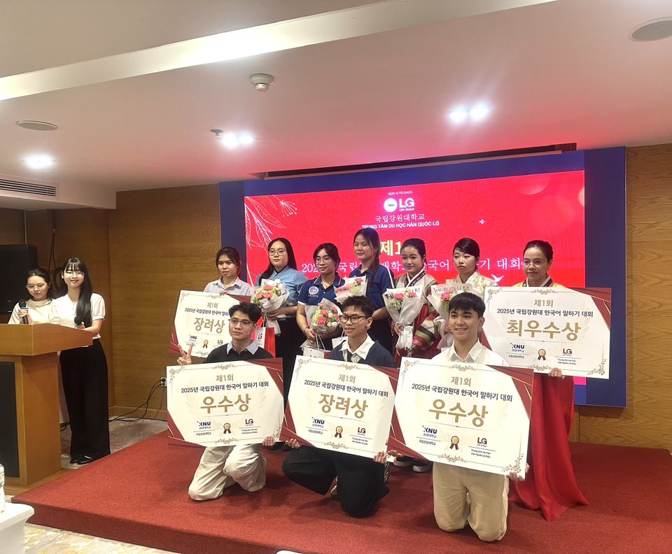 Ngành Hàn Quốc học xin chúc mừng Sinh viên Trương Thị Quỳnh Như, lớp 24DH111, đã xuất sắc đạt Giải Khuyến khích tại Cuộc thi Nói tiếng Hàn Kangwon 2025 – Lần thứ Nhất, do Trường Đại học Quốc gia Kangwon và Trung tâm Du học Hàn Quốc LG EDU tổ chức.