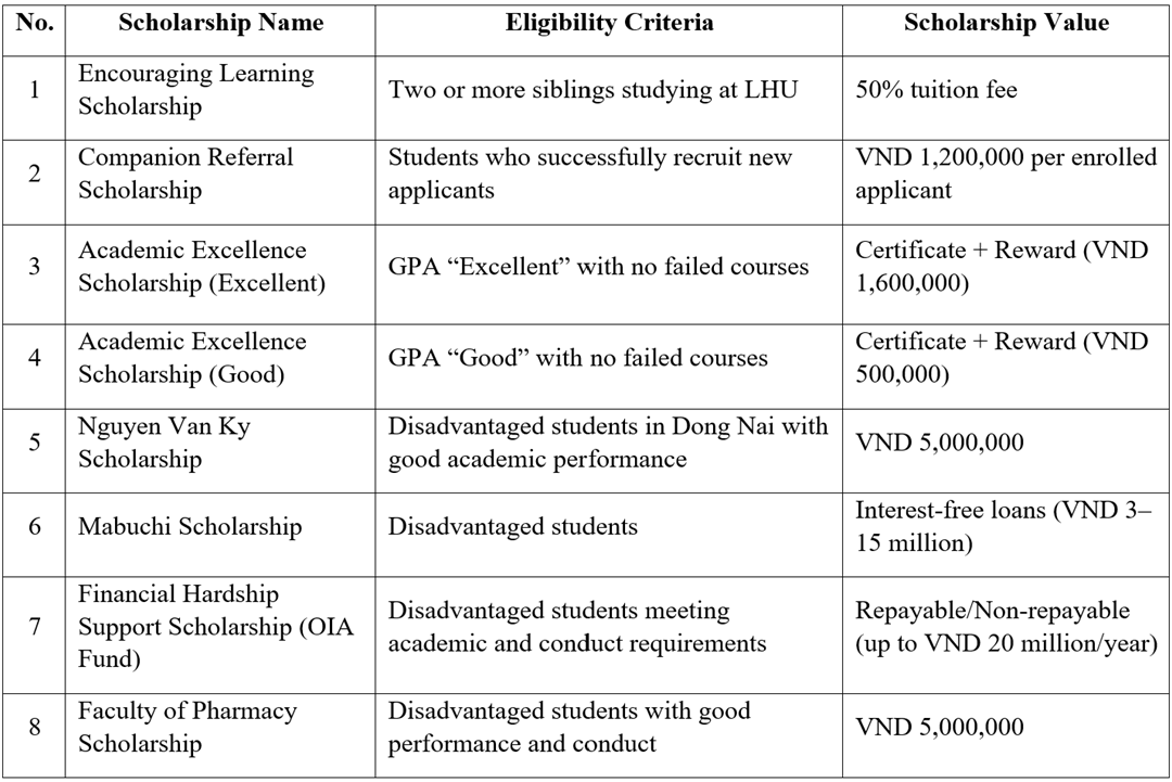 Scholarship policy for pharmacy students – Lac Hong University